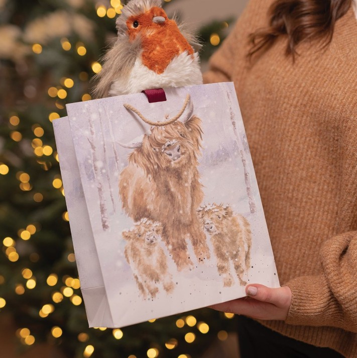 Wrendale Designs Gift Bag - Large 'A Highland Christmas' Highland Cow