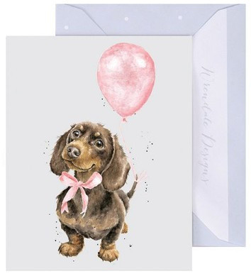 Wrendale Designs 'Sausage Dog Pink' Dachshund - miniature card