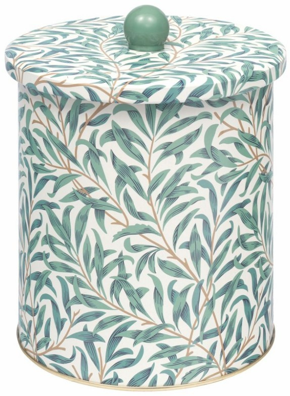 Middelgrote koekjesblik in Willow-design uit de Arts & Crafts-collectie. Dit prachtig vormgegeven blik is elegant versierd met een illustratie geïnspireerd op het delicate gebladerte van de natuur, in zachte groene en turquoise tinten tegen een crèmekleurige achtergrond. Het blik is perfect om koekjes en biscuits vers te houden. Praktisch én decoratief, het is een attent cadeau of een charmante aanwinst voor je eigen huis.