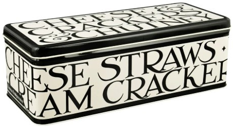 As a biscuit tin, this has many merits: it’s a good size biscuit container, it has a well-fitting lid so is a perfect storage tin, and it tells you on the outside what to keep on the inside. As an added bonus, it’s the perfect long tin shape for cheese straws.