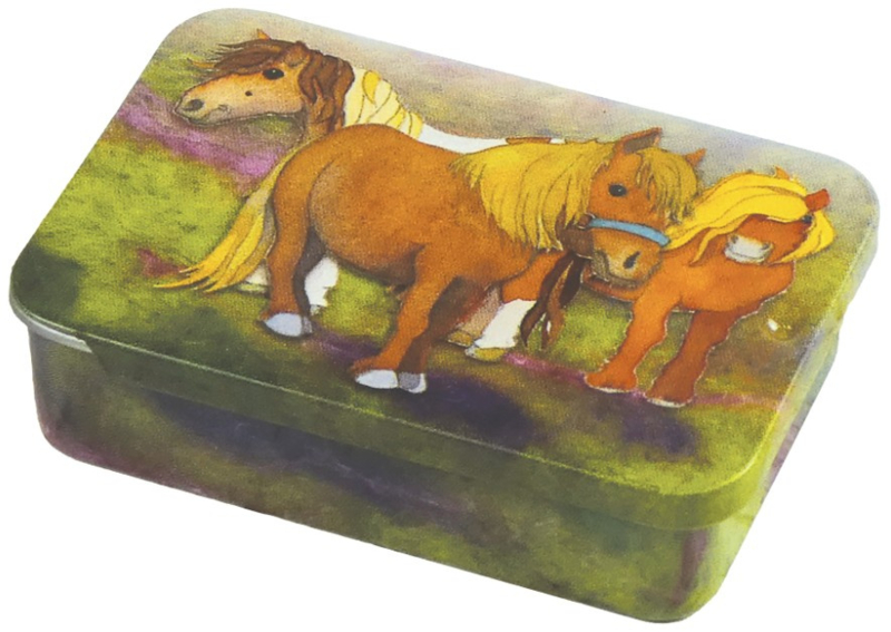 Mini blikje Shetland Ponies -bijvoorbeeld pillen doosje, blikje voor kleine dropjes-