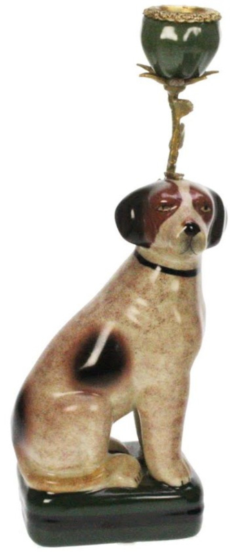 Chique kandelaar uit de collectie van Meander. Stijlvol als set voor op een schouw. Maar op zich zelf ook erg decoratief. Deze set kandelaren van honden zijn handgemaakt. Een prachtige eye-catcher voor je interieur. Deze kandelaren zijn van messing en porselein gemaakt. Door een linker en rechter hond kandelaar samen te combineren kun je eenvoudig een uniek effect creëren.