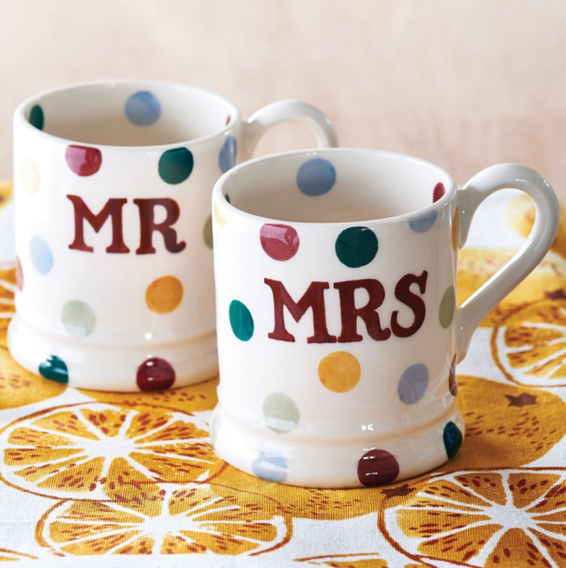 Emma Bridgewater Polka Dot 'Mr & Mrs' Set of 2 1/2 Pint Mugs Boxed