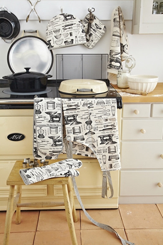 - This beautiful tea towel has been designed by our in house design team. Made from 100% unbleached cotton, it depicts images of traditional bakeware items onto a cream unbleached cotton base , the perfect gift for a keen baker. The cotton tea towel comes folded and packaged with a branded tag.