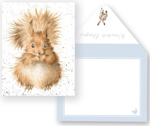 - Starring a cute squirrel this miniature card will make a big impact when accompanying a gift or sending a little message. Measuring a small 91mm x74mm this cute miniature card is supplied with an illustrated colour envelope and is printed on our signature sustainably sourced textured board.