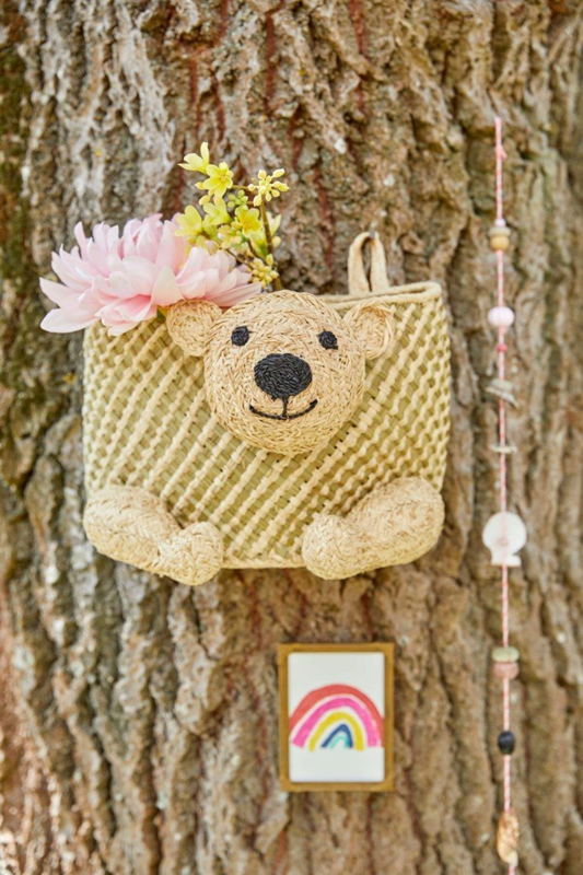 - The cutest, weaved bear storage basket to hang on your wall! 100% handmade in Madagascar of seagrass and raffia raffia – and as it so, no two products will ever be the same, which we think is part of the charm. It is SO cute and is definitely a must-have in every home... Place it in the living room, kids' room, bedroom... Wherever you feel like having a beautiful storage basket for your favorite items... Books and toys or even for a gorgeous plant. Is also available in other animal shapes.