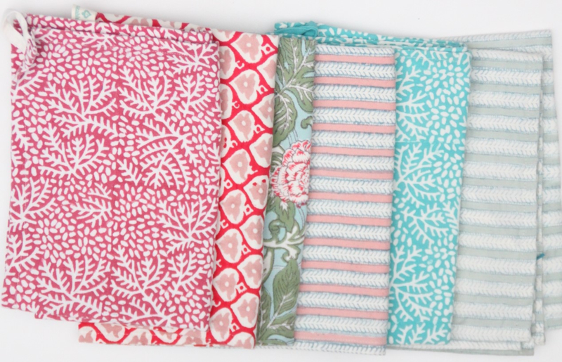 Theedoek Funcky Stripes roza & blue