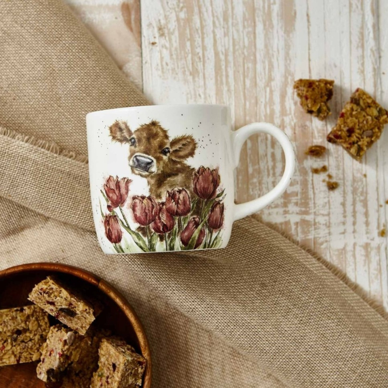 - Put a smile on your friend's face every day with this fine bone china mug from Wrendale Designs. This beautifully illustrated 'Bessie’ mug made from fine bone china produced by Royal Worcester would make a lovely gift or perfect addition to your kitchen. This mug has a different image on the front and back and a third image on the inner rim. Capacity 0.3L, Dishwasher and Microwave Safe.