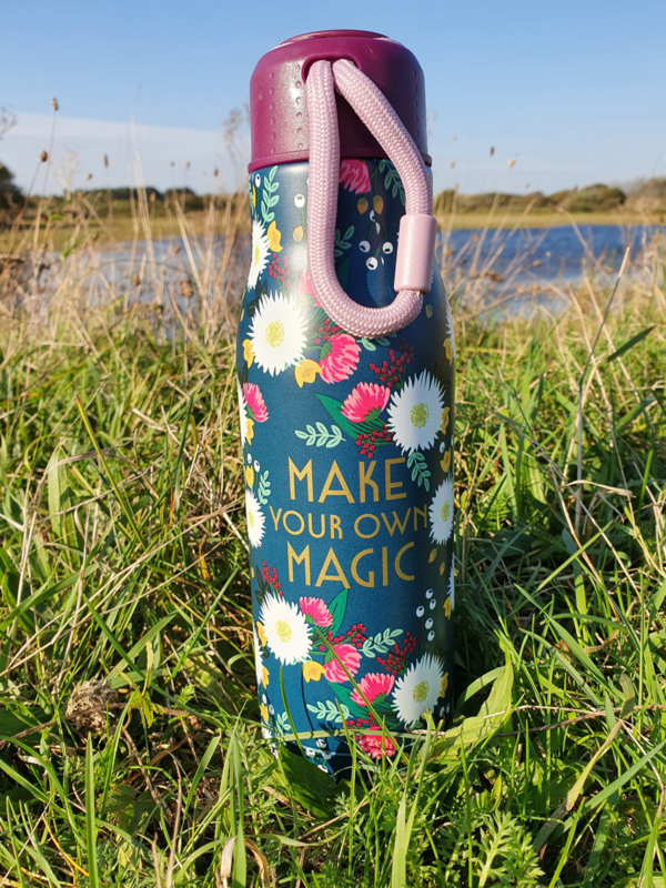 Rice Isolating Drinking Bottle with Wedding Bouquet print 'Make your own magic'- RVS