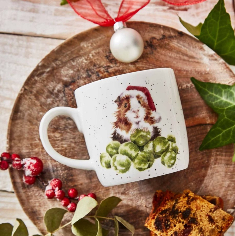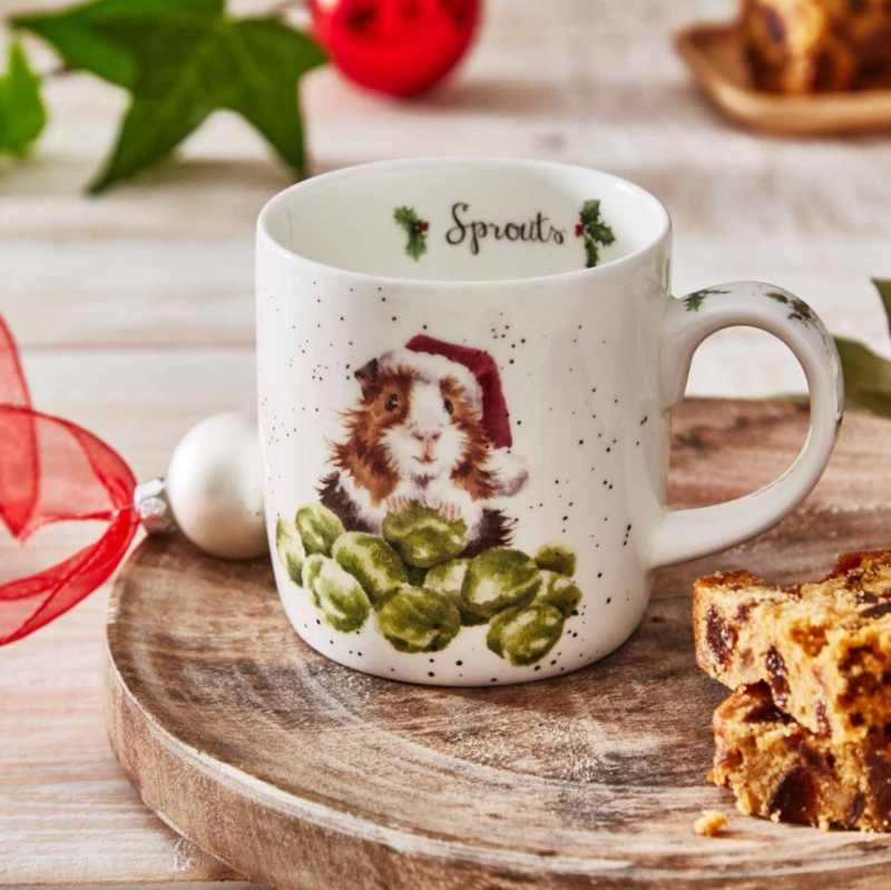 - Feeling festive? Our gorgeous Wrendale Designs Sprouts mug is perfect for spreading some seasonal cheer. Whether you give it as a gift or add it to your existing Wrendale Christmas collection, it’s sure to make your morning coffee taste just that little bit sweeter. Decorated with a gorgeous Guinea pig, snuffling its way through a mountain of sprouts, this delightful mug is made from fine china and is microwave and dishwasher safe, making it suitable for everyday use.