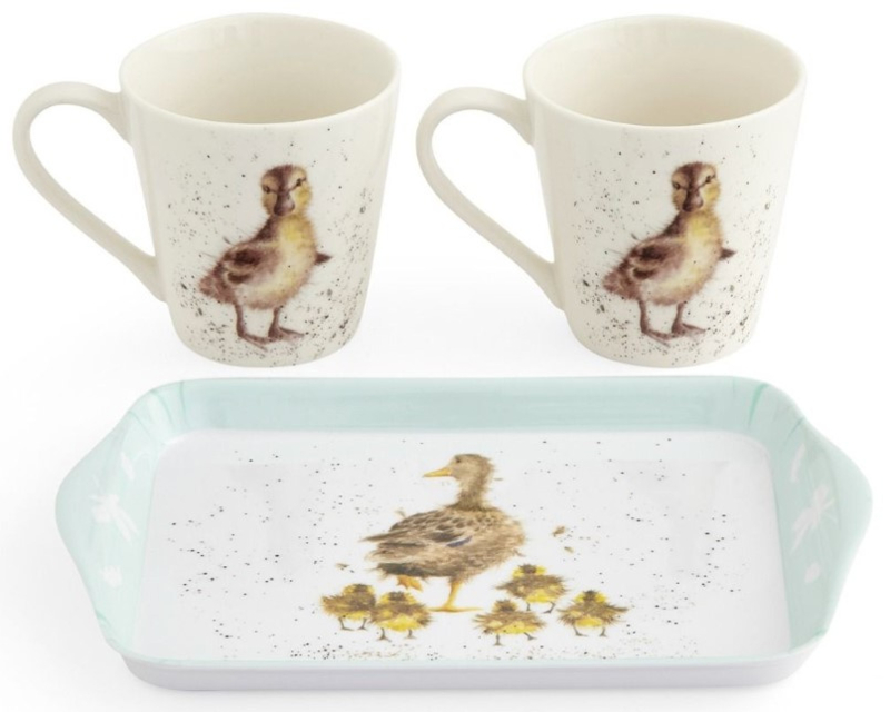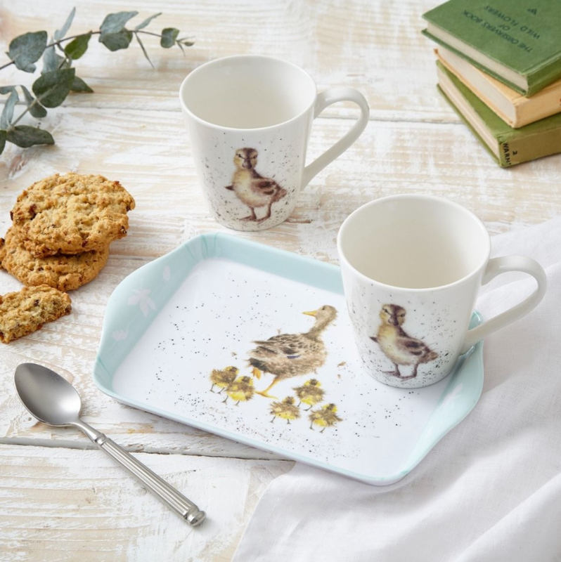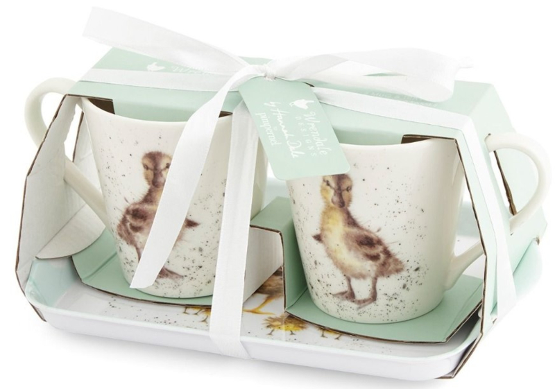 - Spread some joy all year round with this Royal Worcester Wrendale Designs matching mug and tray set. A gorgeous gift for her, it’s beautifully decorated with heart‐warming watercolour designs by Lincolnshire artist, Hannah Dale and is sure to be adored by its recipient. This charming set includes two matching porcelain mugs, which are decorated with a loveable young duckling, and a melamine tray featuring a mother duck and her babies, edged with a pale green, floral‐embellished trim. The perfect size for entertaining a friend, it slots neatly into the dishwasher for easy cleaning.