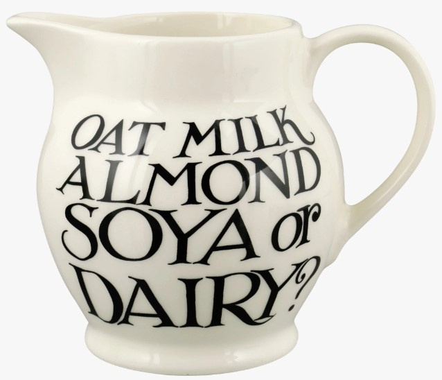 - No matter each family member's preference for type of milk, there can only be one choice of jug: our Black Toast Soya Or Dairy 1/2 Pint Jug.