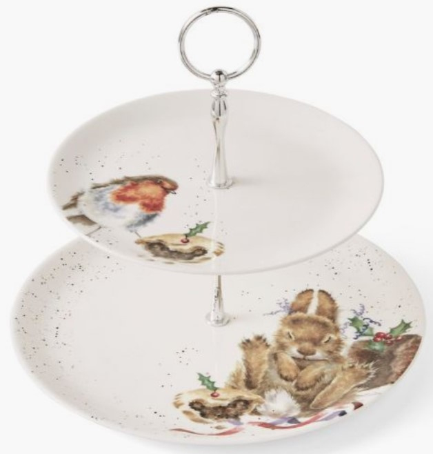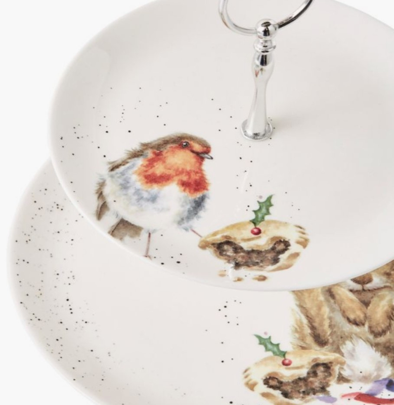 Wrendale Designs Robin & Bunny 2 Tiered Cake Stand -kerst-