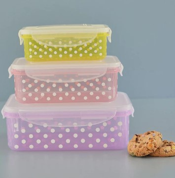 - Superleuke rechthoekige voorraadbakjes of lunchtommels in originele kleuren met stippen. Onze missie is om dagelijkse magie te creëren door plezier en functionaliteit te combineren - wat deze bakjes zeker waarmaken. Ze zijn transparant, zodat je gemakkelijk kunt zien wat je bewaart, en de verschillende maten maken ze perfect voor zowel jou als de lunch van de kinderen.