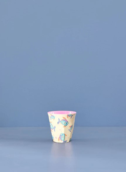 - Mooie melamine beker versierd met vissen print en een lichtroze binnenkant uit de Summer High collectie van Rice