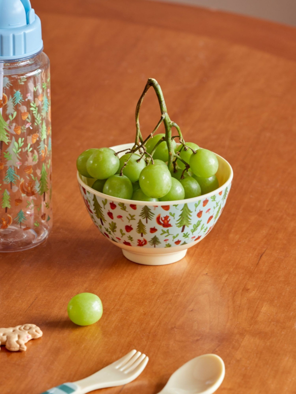 Rice Small Melamine Bowl - Blue Happy Forest Print