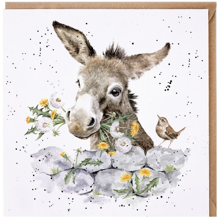 - Deze kaart met een schattige ezel is perfect voor elke gelegenheid. Gedrukt op duurzaam getextureerd karton, de kaart wordt geleverd met een gerecyclede kraft-envelop en is blanco aan de binnenkant voor uw eigen bericht.