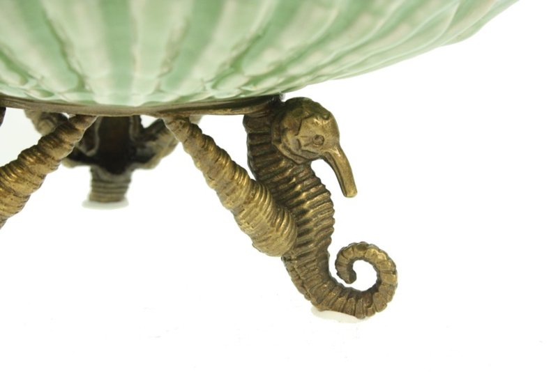 Deze pot in Art Nouveau Style is prachtig gedecoreerd met een schelp en voetjes van brons. Flora en Fauna waren de grote inspiratiebronnen van de Art Nouveau. Art Nouveau was een kunststroming tussen 1890 en 1914.