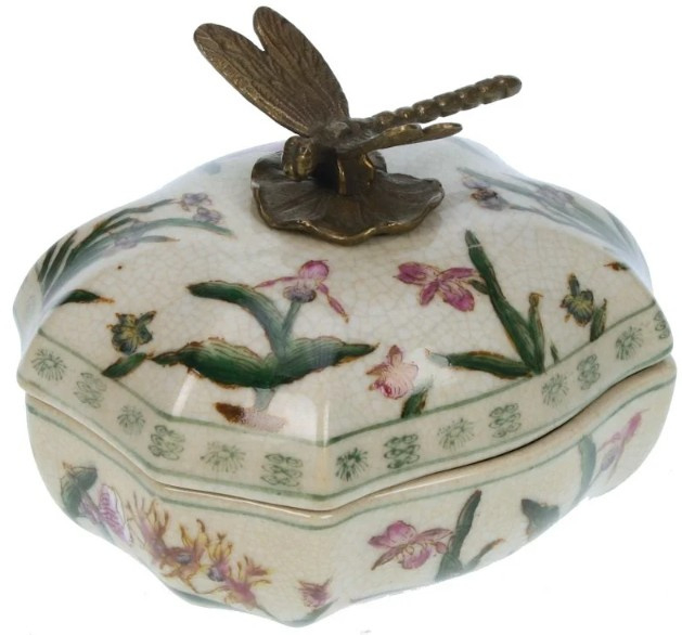Meander Craquelé Doosje, Orchidee met Libelle - Brons