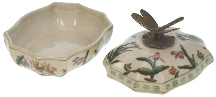 Craquelé aardewerk potje afgewerkt met bronzen libelle