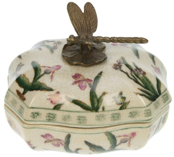 Meander Craquelé Doosje, Orchidee met Libelle - BronsMeander