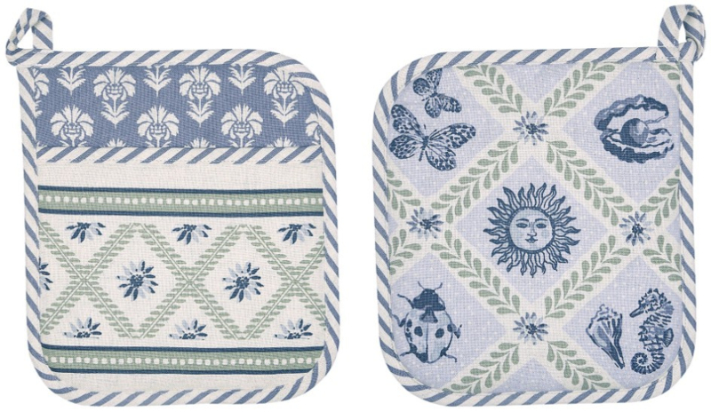 Ulster Weavers uit Ierland is welbekend om de geplastificeerde schorten en kwalitatieve theedoeken. Daarnaast hebben ze erg leuke theemutsen, ovenhandschoenen en katoenen linnengoed voor in de keuken. Hieronder staan alle artikelen in het Coastal Treasures motief, leuk om een set te maken.